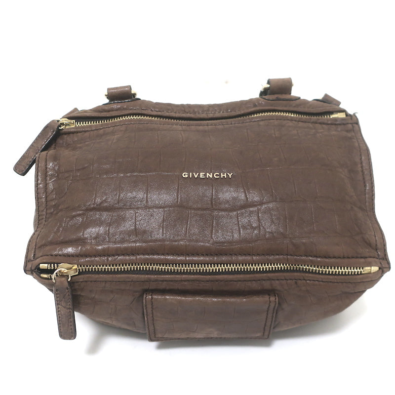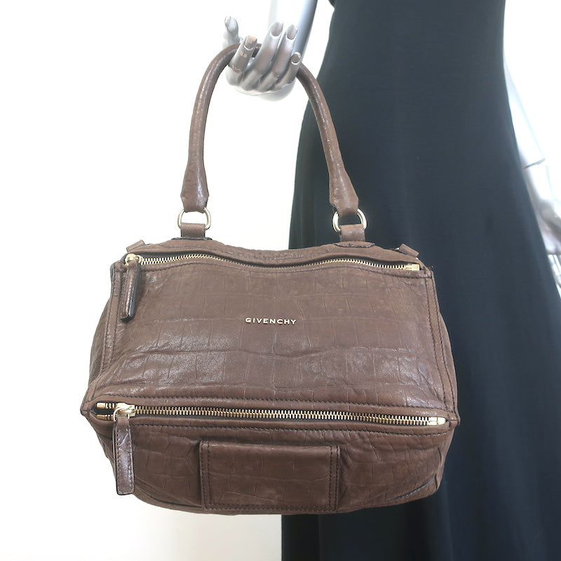 Givenchy Medium Pandora Bag Brown Crocodile-Embossed Nubuck Leather Crossbody