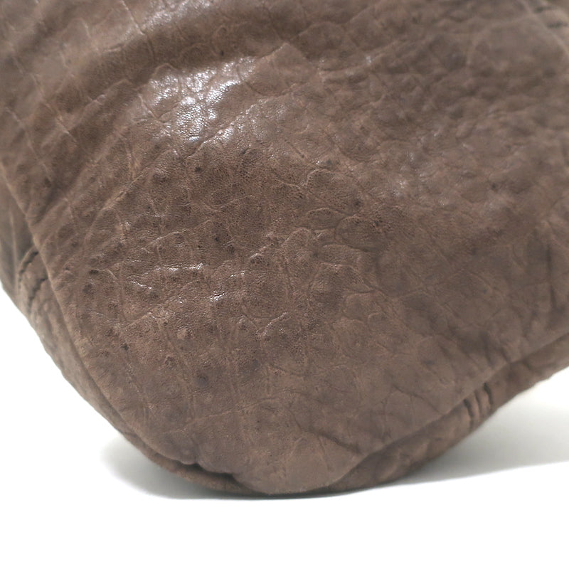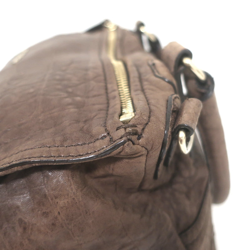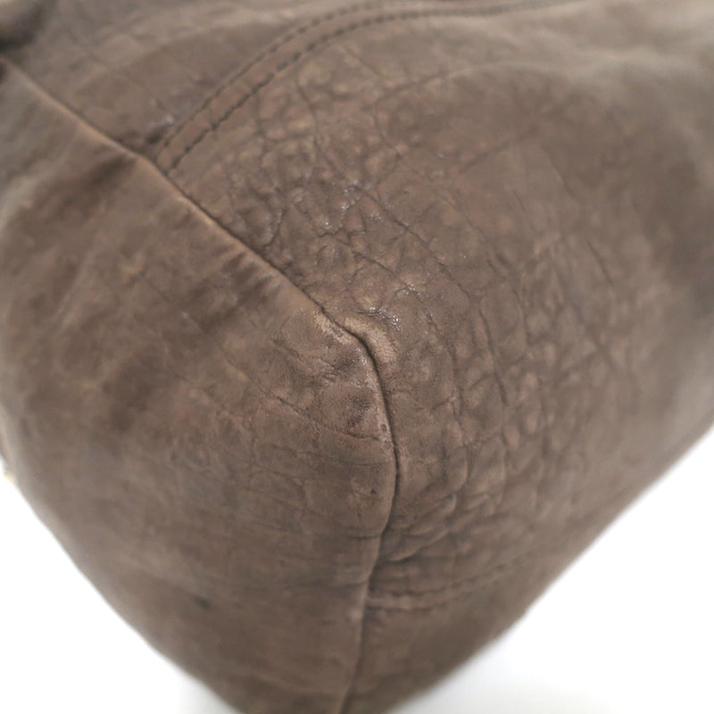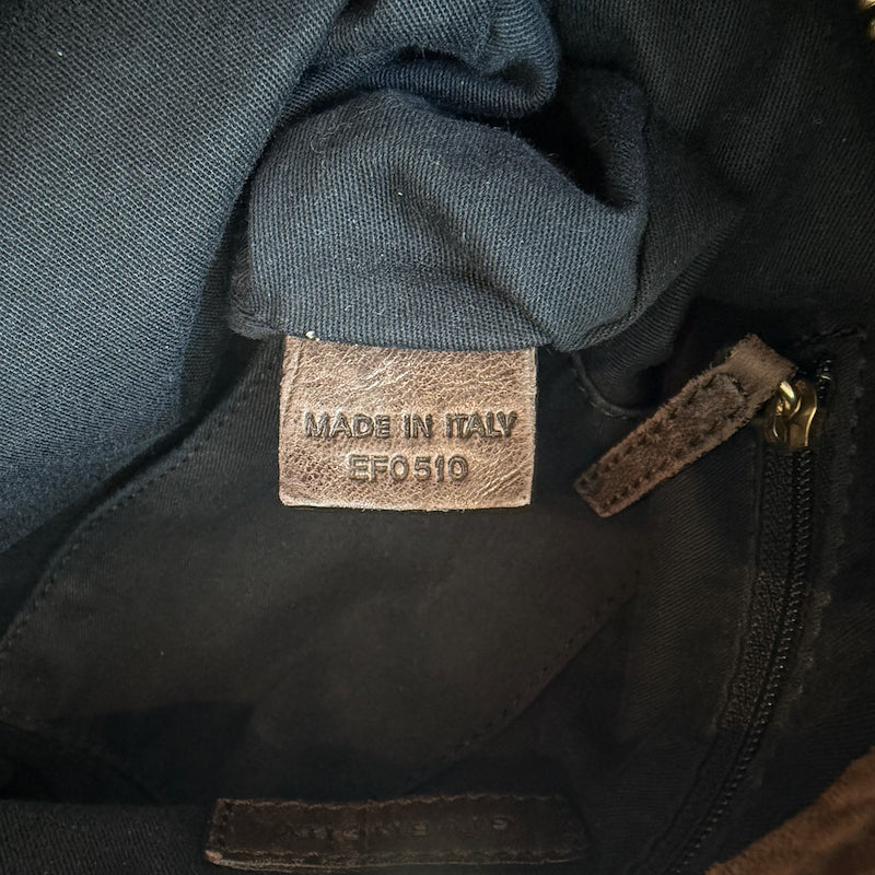 Pre-loved. Distressing throughout leather. Wear on corners, along edges and on zipper pulls. Some tiny dark spots on sides. A couple of small white smudges on lining. Comes with dust bag. Retails for $2,500!