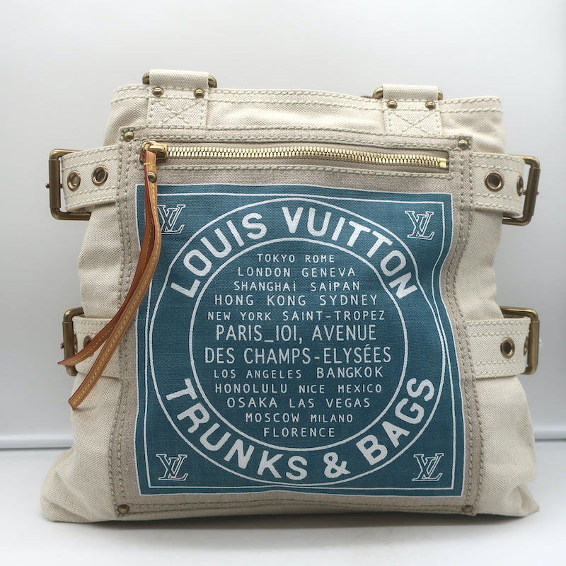 Louis Vuitton Globe MM Shopper Tote Ecru Canvas Shoulder Bag