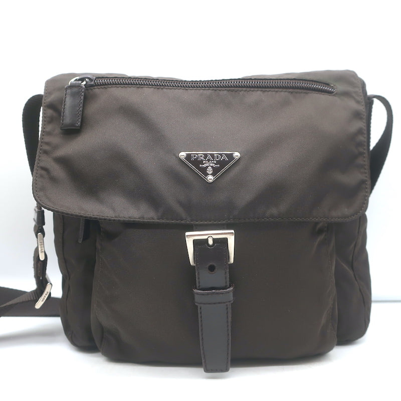 Prada Vela Hunting Bag Dark Brown Tessuto Nylon Small Crossbody